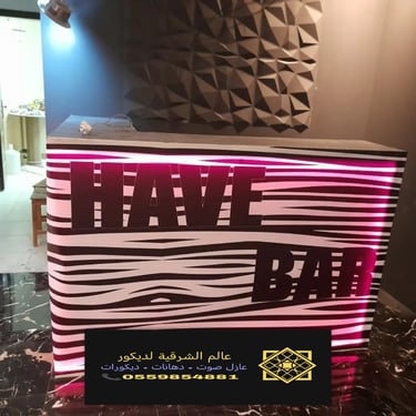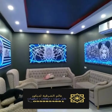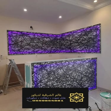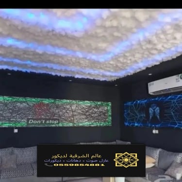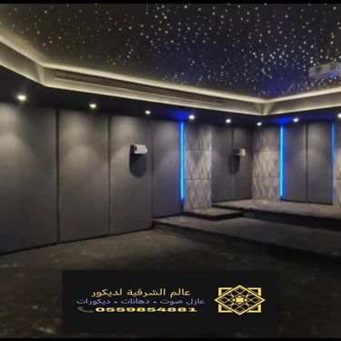محل ديكورات في الشرقية، متخصص في تصميم وتنفيذ جميع أنواع الديكور للمنزل والمكتب والمحلات أيضا، تركيب عوازل الصوت ، اسقف مستعارة، سقف روز، ديكورات ضوئية ، بديل الخشب والرخام في الدمام الخبر القطيف.معلم عازل صوت الدمام ومعلم تركيب ديكورات الخبر مثل بديل الخشب, بديل الرخام, إطارات فوم, ورق جدران, ولوحات مضيئة وكذألك معلم دهانات داخلية القطيف وأيضا مقاول تركيب مظلات وسواتر الظهران سيهات والجبيل.